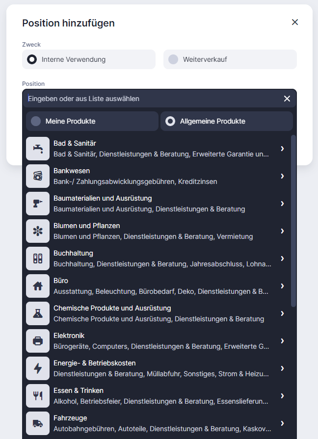 2. Macht die Erstellung von Eingangsrechnungen einfacher. Verwende allgemeine Produkte, wenn du keine Produkte in Runple erstellen möchtest.