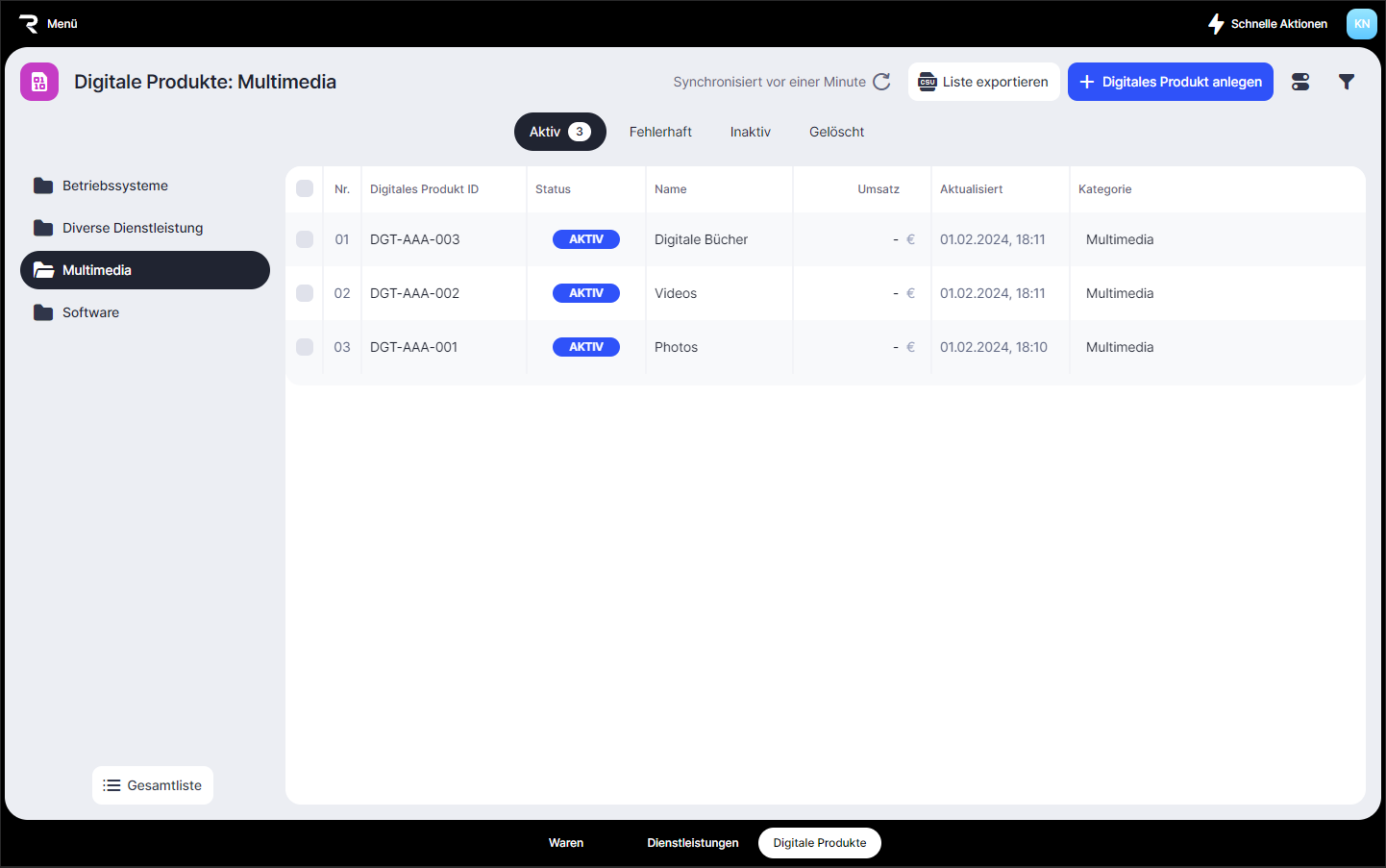 1. Öffne die Listen der digitalen Produkte.