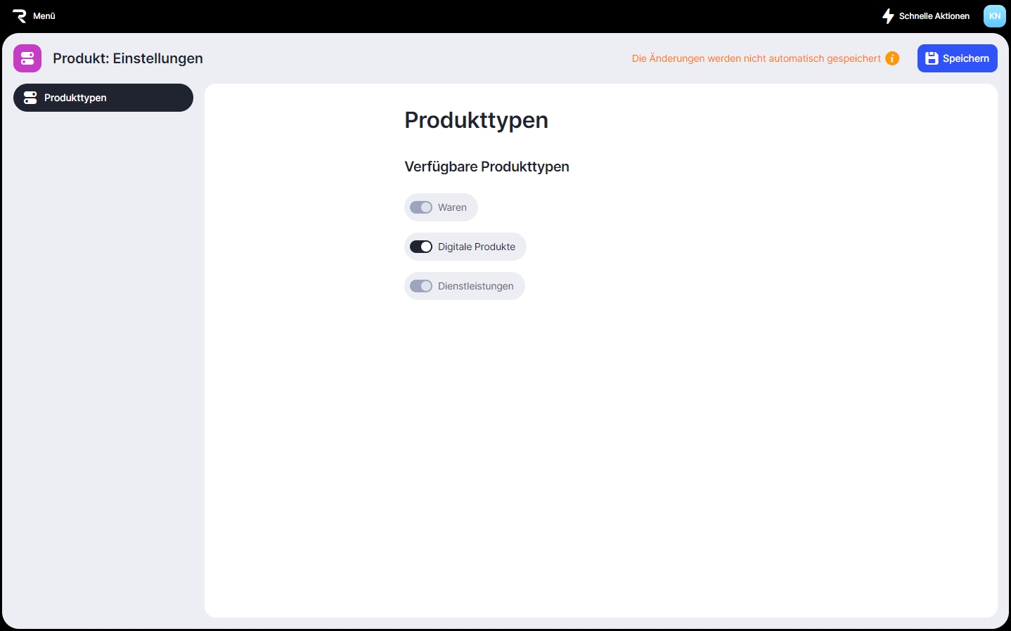 In Produkttypen kannst du die gewünschten Produkttypen aktivieren oder deaktivieren.