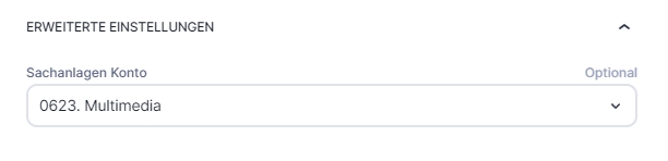 Ein Sachanlagen-Konto für die interne Verwendung wird automatisch ausgewählt, nachdem du den Produkttyp gewählt hast.
