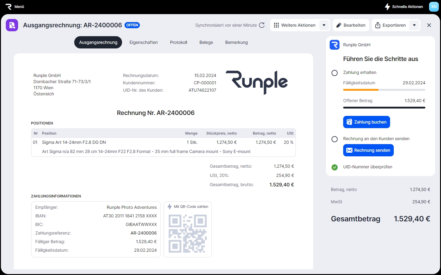 Du kannst die offene Ausgangsrechnung jederzeit bearbeiten.