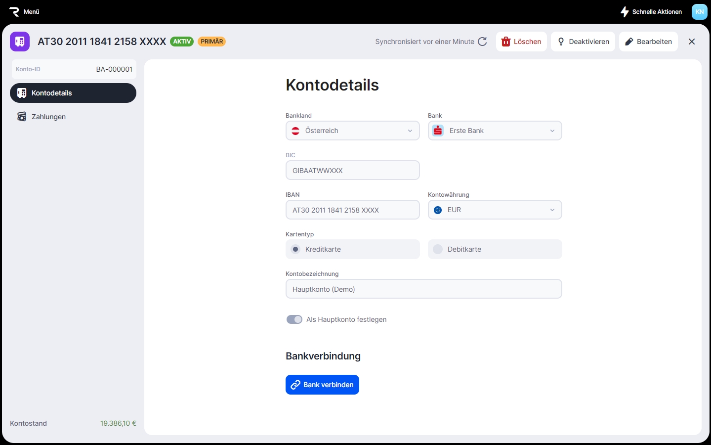 2. Öffne das Bankkonto, für das du die erweiterte Verbindung nutzen möchtest.