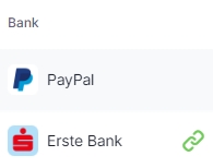 Das Kettensymbol zeigt an, dass das Konto mit der Bank verbunden ist.