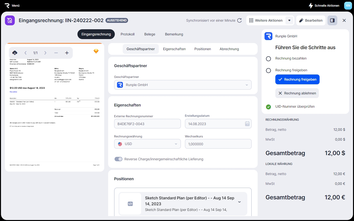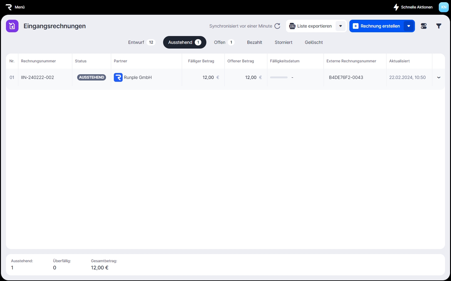 Sobald die Eingangsrechnung freigegeben wurde, wird sie als offen markiert.