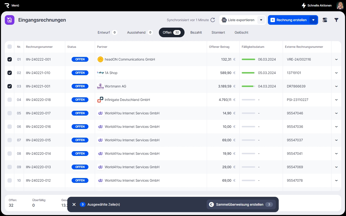 3. Wähle die Rechnungen aus, die du bezahlen möchtest.