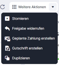 Klick Weitere Aktionen um die Liste der Aktionen anzuzeigen, die du mit der offenen Eingangsrechnung durchführen kannst.