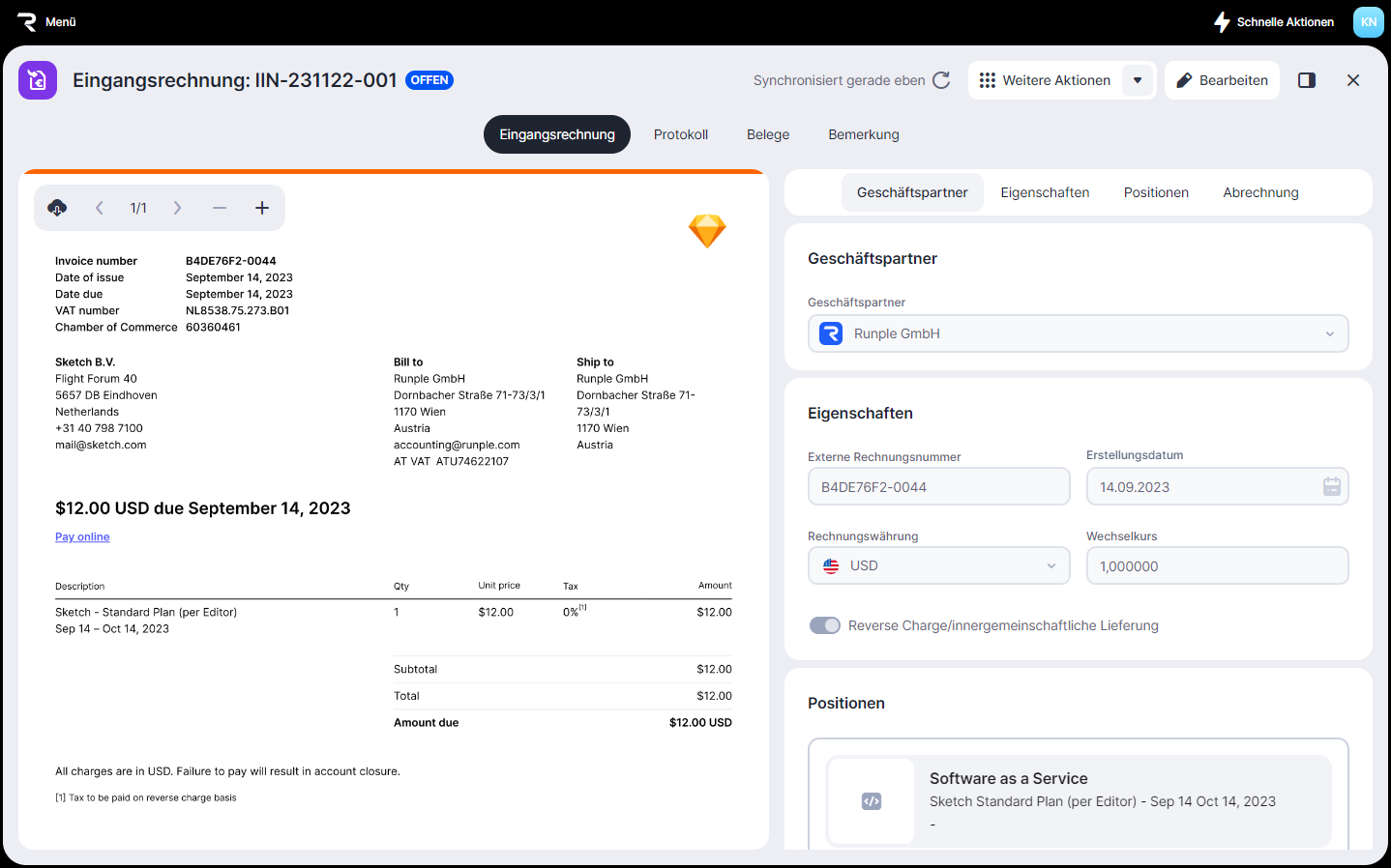 Du kannst die offene Eingangsrechnung jederzeit bearbeiten.