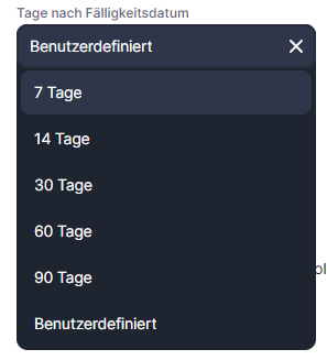 Das Datum für den Versand der Nachricht wird durch die Anzahl der Tage nach dem Fälligkeitsdatum bestimmt.
