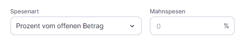 Sobald du die Mahnspesen aktiviert hast, kannst du die Spesenart wählen: einen festen Betrag oder einen Prozentsatz vom offenen Betrag.