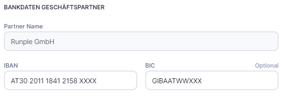 Wenn du die manuelle Überweisung gewählt hast, musst du die IBAN deines Geschäftspartners angeben.