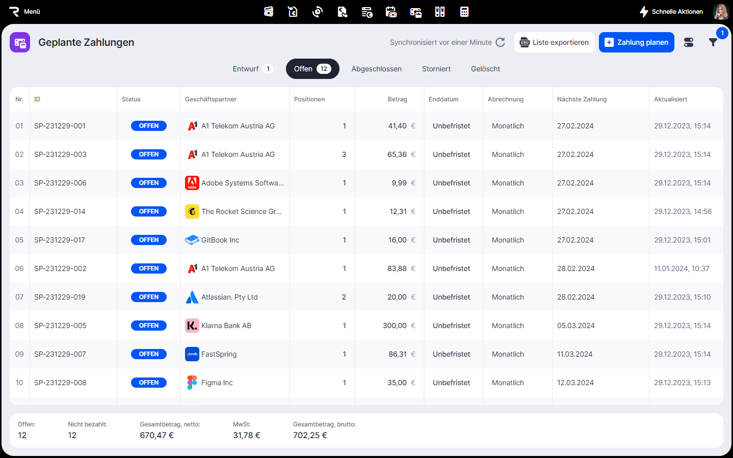 Sobald das Enddatum erreicht ist, wird die geplante Zahlung automatisch als abgeschlossen markiert.