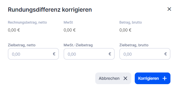 Du kannst die Rundungsdifferenz korrigieren, wenn die Summe der Positionen in Runple und der Betrag in der erhaltenen Gutschrift voneinander abweichen.