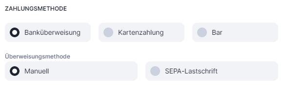 Du kannst die Erstellungsmethode von Rechnungen wählen.