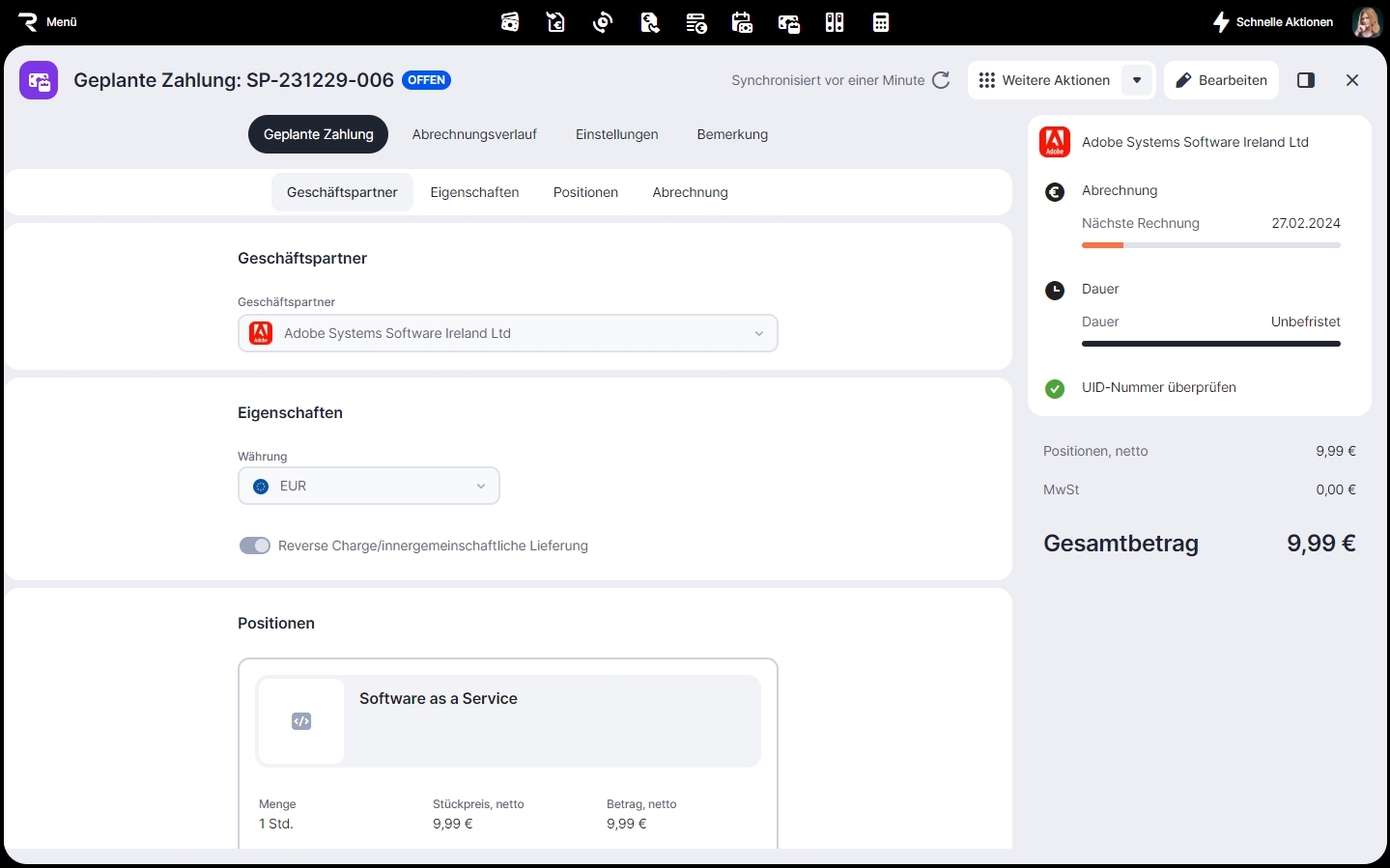 Klick Bearbeiten um die geplante Zahlung zu bearbeiten.