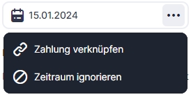 Der Zeitraum bleibt offen, bis die verknüpfte Rechnung oder Zahlung gebucht wird. Wenn du eine bereits für diesen Zeitraum gebuchte Rechnung oder Zahlung stornierst, wird der Zeitraum wieder geöffnet.