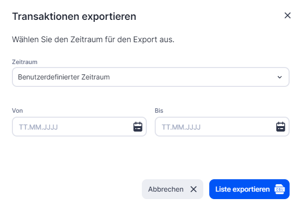 2. Wähle den Zeitraum, für den du Transaktionen exportieren möchtest.