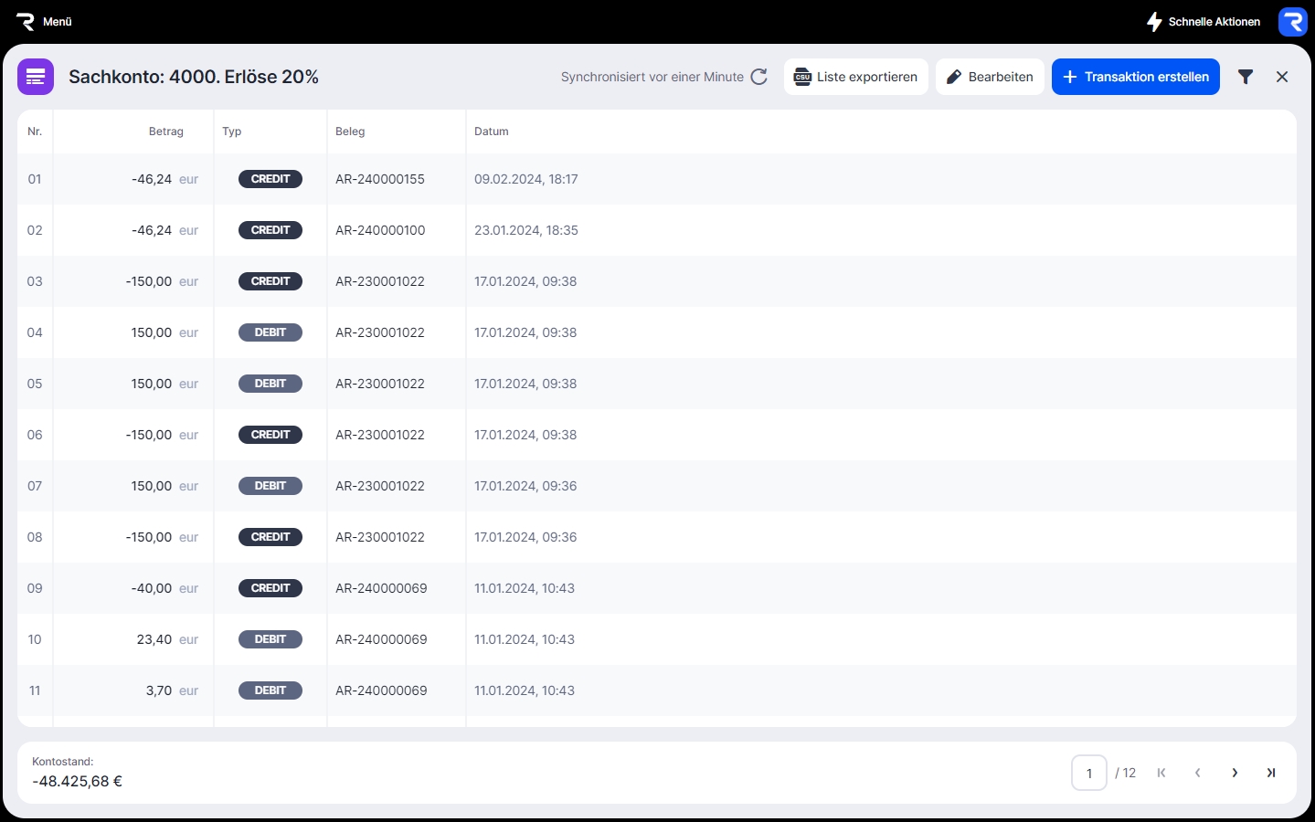 Unter Sachkontodetails findest du eine Liste der Sachkonto-Transaktionen.