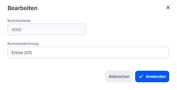 um die Kontonummer und Kontobezeichnung zu ändern.