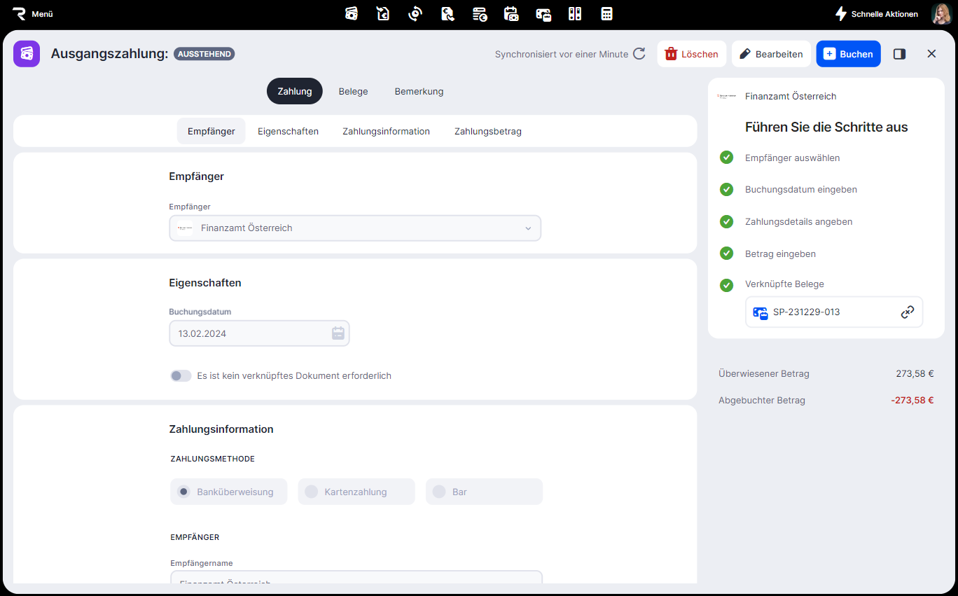 Um eine Zahlung halbautomatisch zu buchen, musst du: