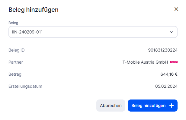 5. Klick Beleg hinzufügen![]()