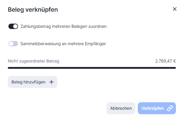 Bitte beachte: Du kannst die Zahlung nur mit den offenen Rechnungen verknüpfen.