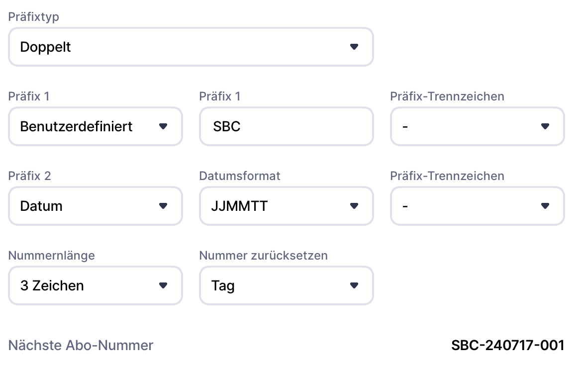 In den Einstellungen Nummernkreis kannst du das Nummernformat für die Abos festlegen.