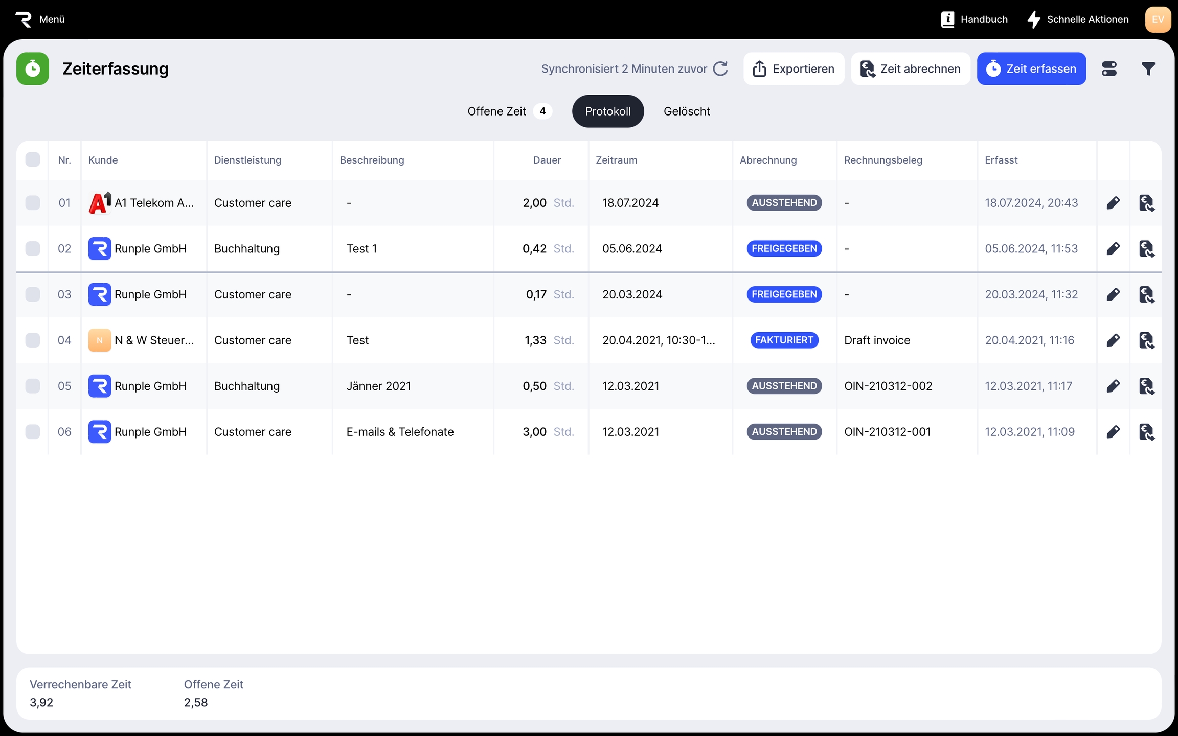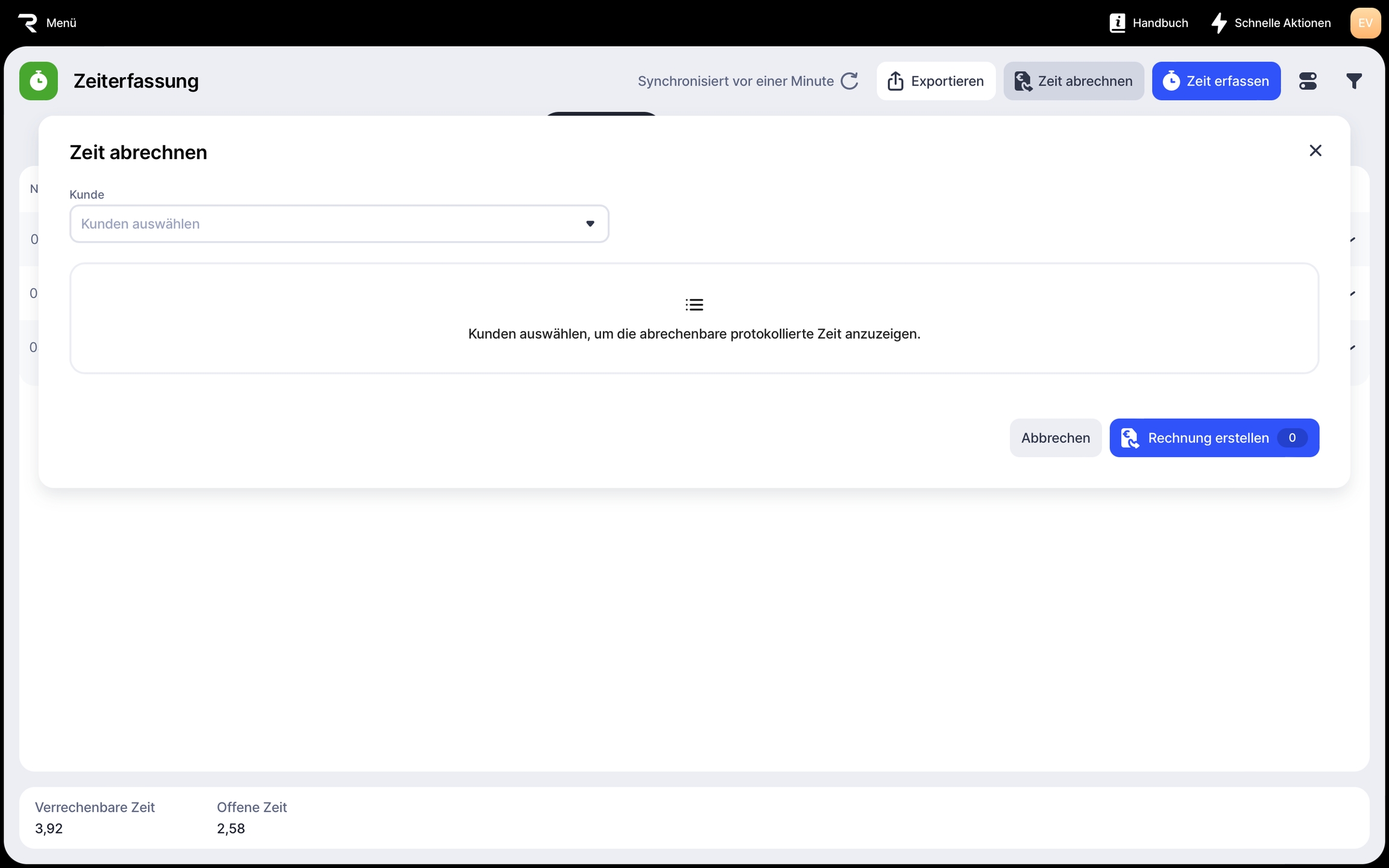 Du hast mehrere Möglichkeiten, die erfasste Zeit in Rechnung zu stellen.