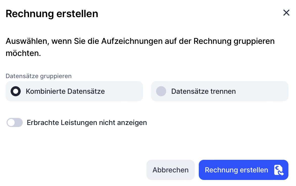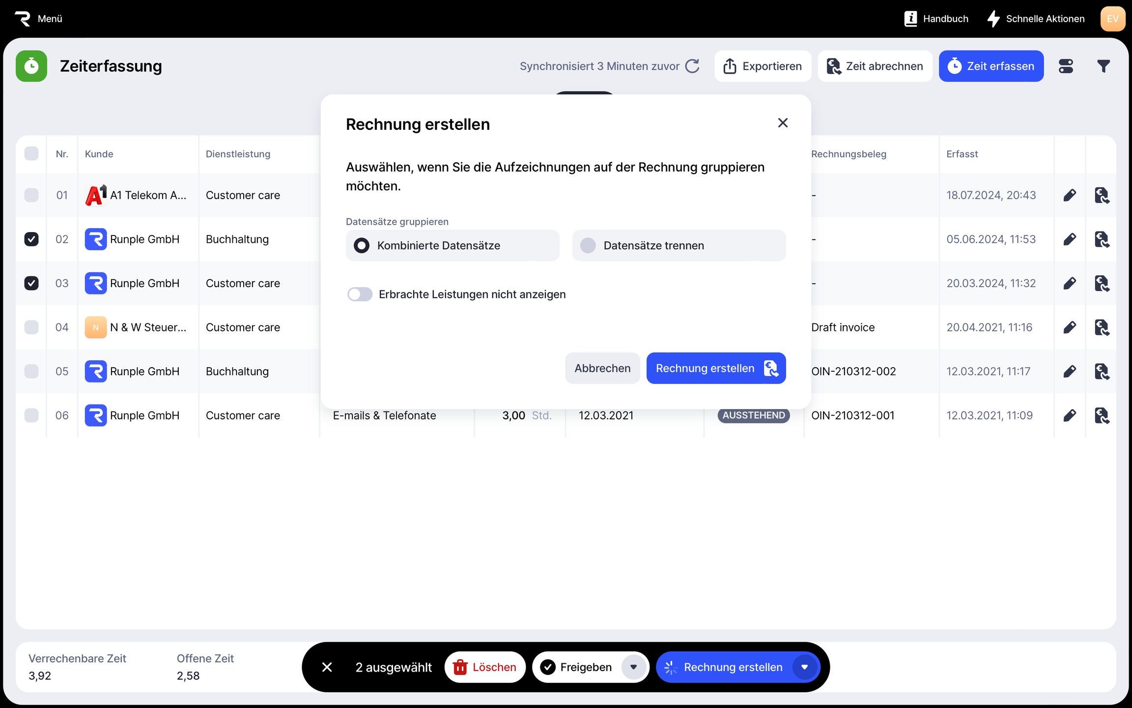 4. Wähle Datensätze aus, die du abrechnen möchtest.