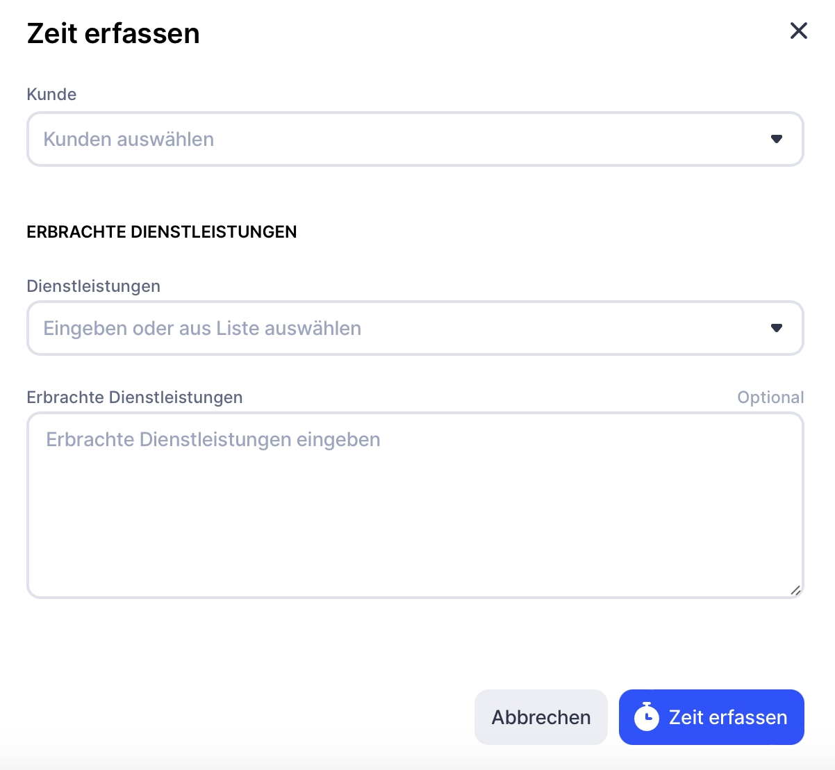 4. Wähle eine Dienstleistung, für die du Zeit erfassen möchtest.