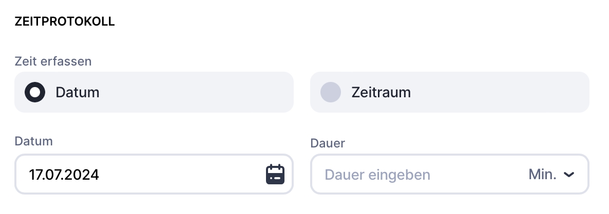 Wähle Datum, wenn du einen bestimmten Tag der Dienstleistung eingeben möchtest.