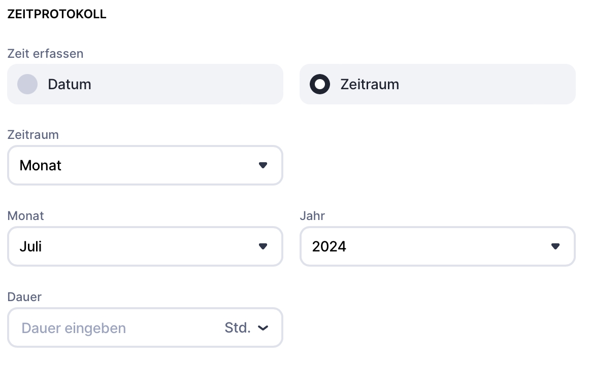Wähle Zeitraum, wenn du die Dienstleistung in einem bestimmten Zeitraum erbracht hast.