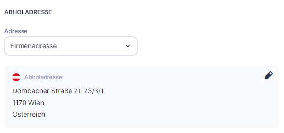 Deine Firmenadresse wird als Standardabholadresse verwendet.