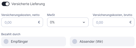 Aktiviere die Option Versicherte Lieferung, wenn du die Kosten für die Versandversicherung angeben möchtest.