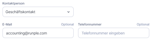 Sobald du den Kunden ausgewählt hast, kannst du eine Kontaktperson auf der Kundenseite auswählen.