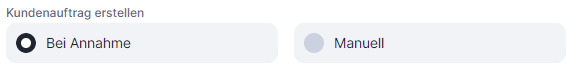 Wähle Bei Annahme, wenn du möchtest, dass bei Annahme des Angebots automatisch ein Kundenauftrag erstellt wird. Wähle Manuell, wenn du einen Kundenauftrag manuell erstellen möchtest.