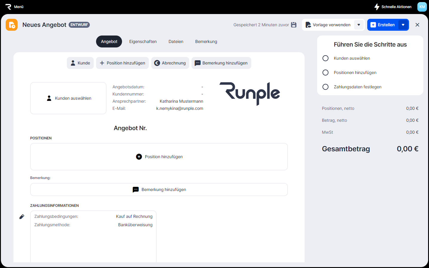 Verwende Vorlagen, um Angebote schneller zu erstellen.