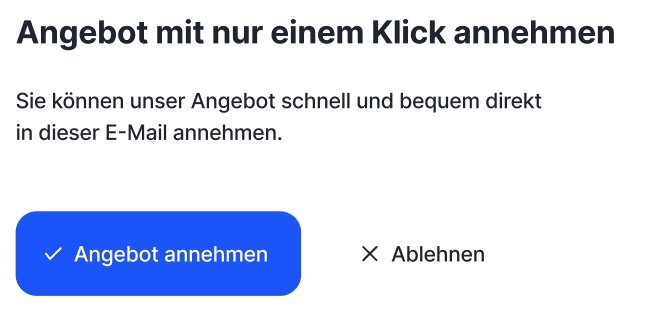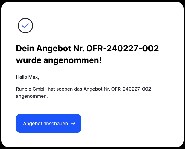 Dein Kunde kann das Angebot direkt in der Angebots-E-Mail annehmen oder ablehnen. Du wirst benachrichtigt, sobald der Kunde dein Angebot angenommen oder abgelehnt hat.