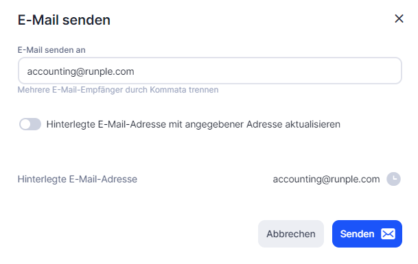 Der E-Mail-Status basiert auf der E-Mail des Dokumentenkontakts. Wenn du eine E-Mail an eine andere E-Mail-Adresse als die des Dokuments sendest, wird der E-Mail-Status nicht aktualisiert.