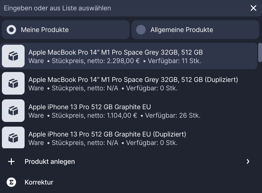 3. Entferne Positionen, du du nicht in die Rechnung stellen möchstet oder reduziere die Menge.