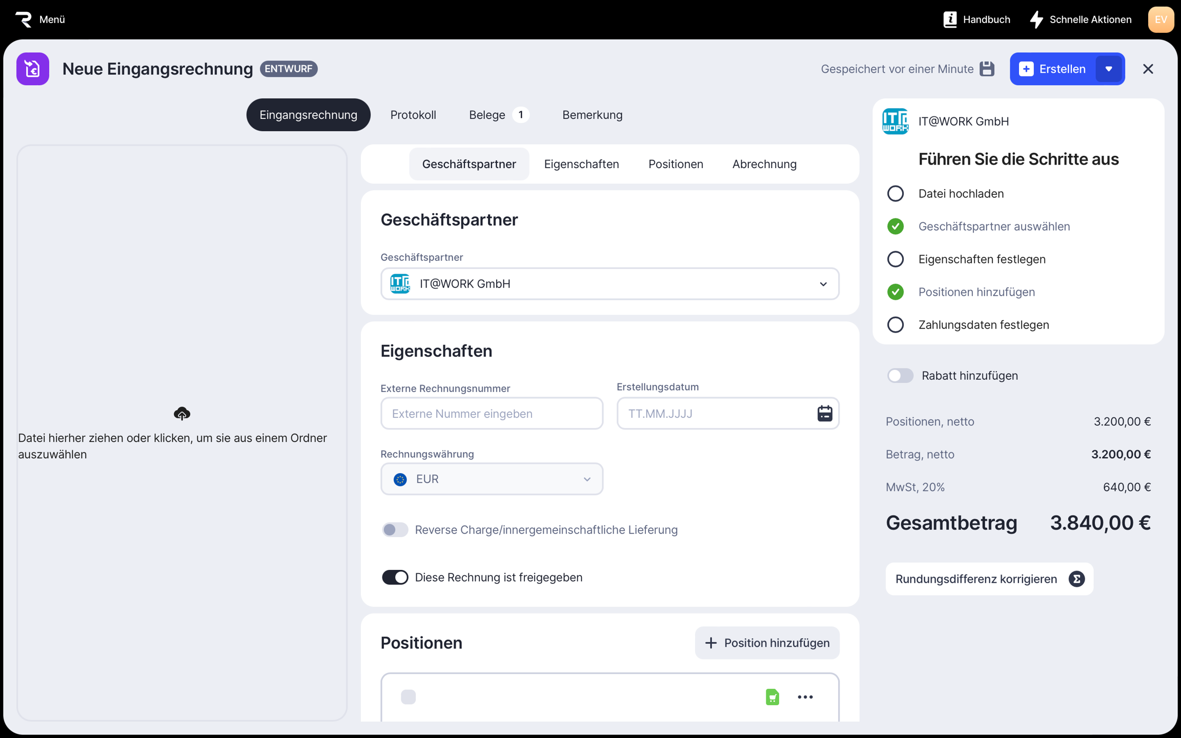 So erstellst du eine Eingangsrechnung: