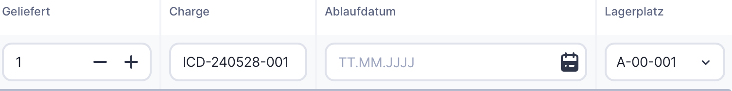 Du kannst auch die Charge, das Ablaufdatum und den Lagerplatz angeben.
