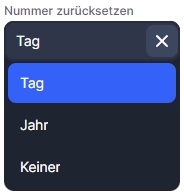 Die Option "Nummer zurücksetzen" legt fest, wie oft die Rechnungsnummer zurückgesetzt wird und von vorne beginnt.
