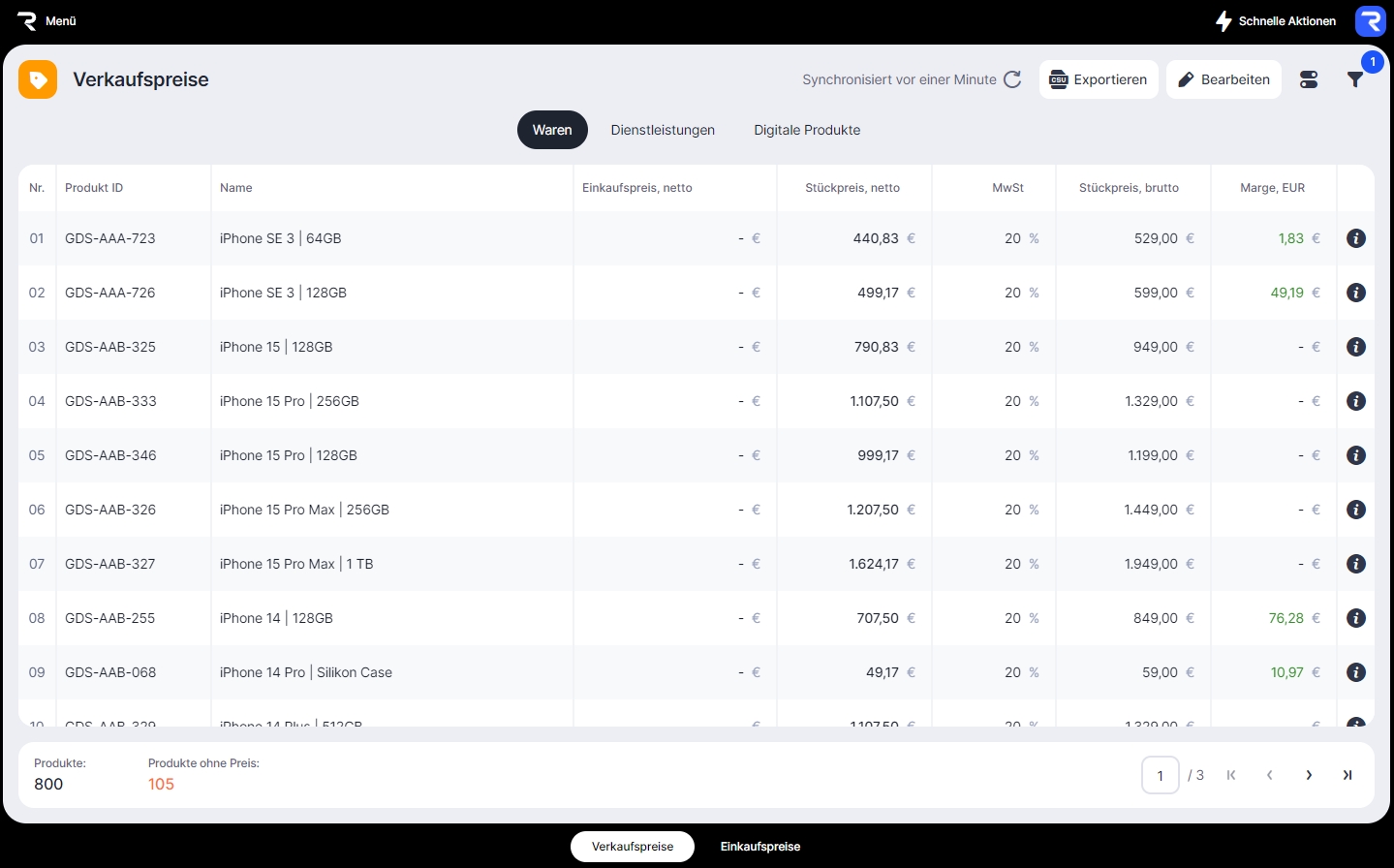 Es ist der zentrale Ort für die Verwaltung deiner Verkaufs- und Einkaufspreise.