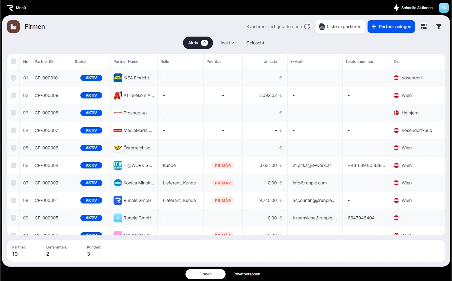 4. Klick Erstellen, um einen neuen Geschäftspartner anzulegen.