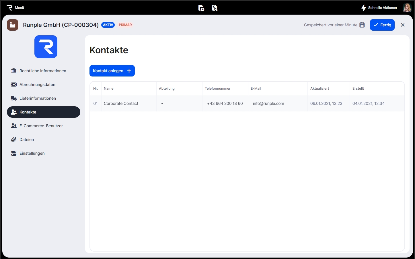 Klick Kontakt anlegen, um eine neue Kontaktperson hinzuzufügen.