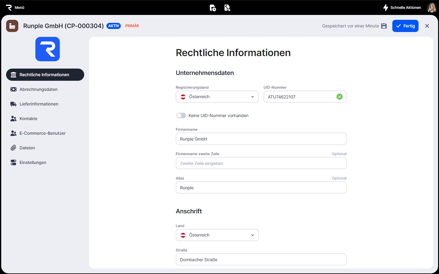 Hier findest du rechtliche Informationen über einen Geschäftspartner, die du jederzeit bearbeiten kannst.