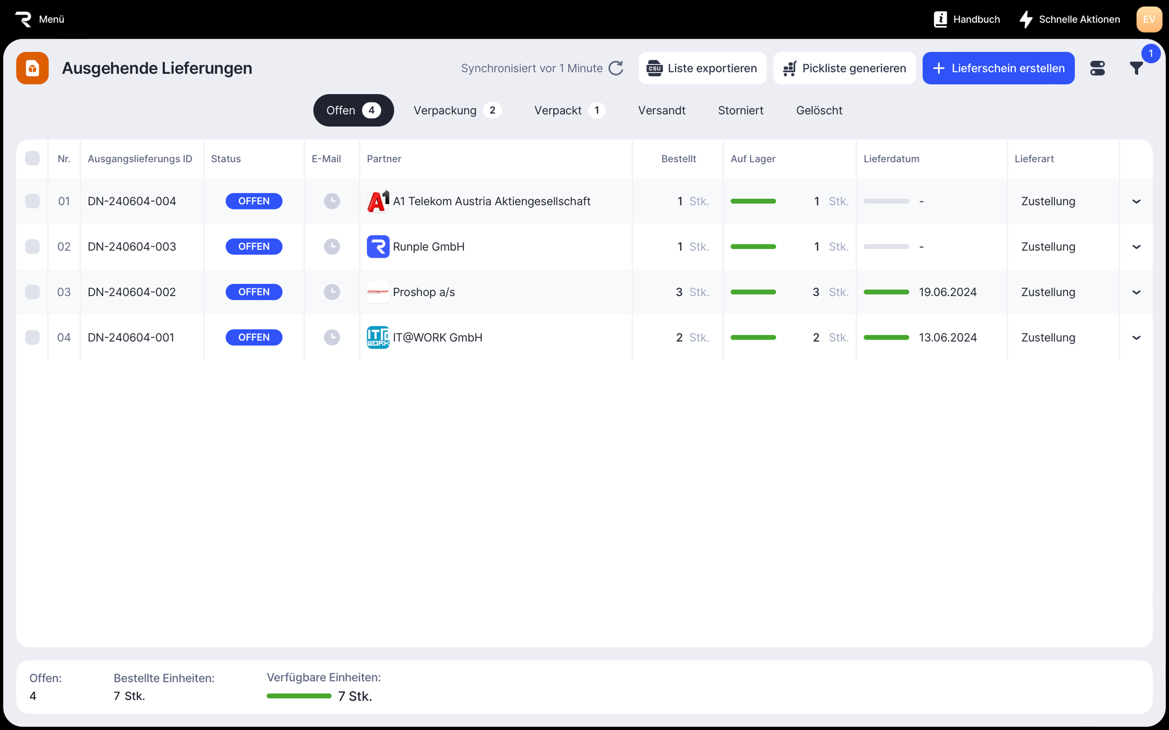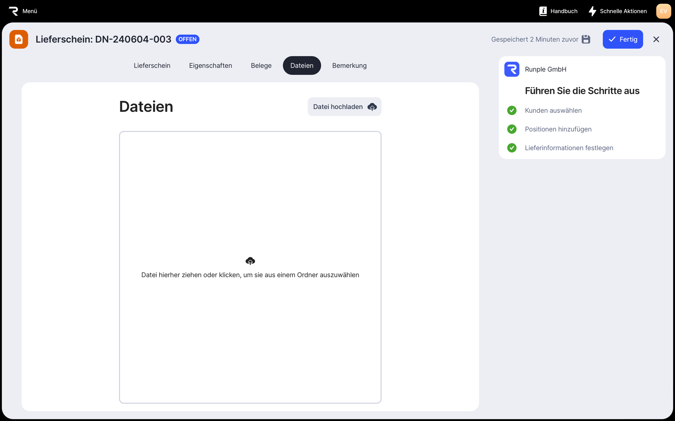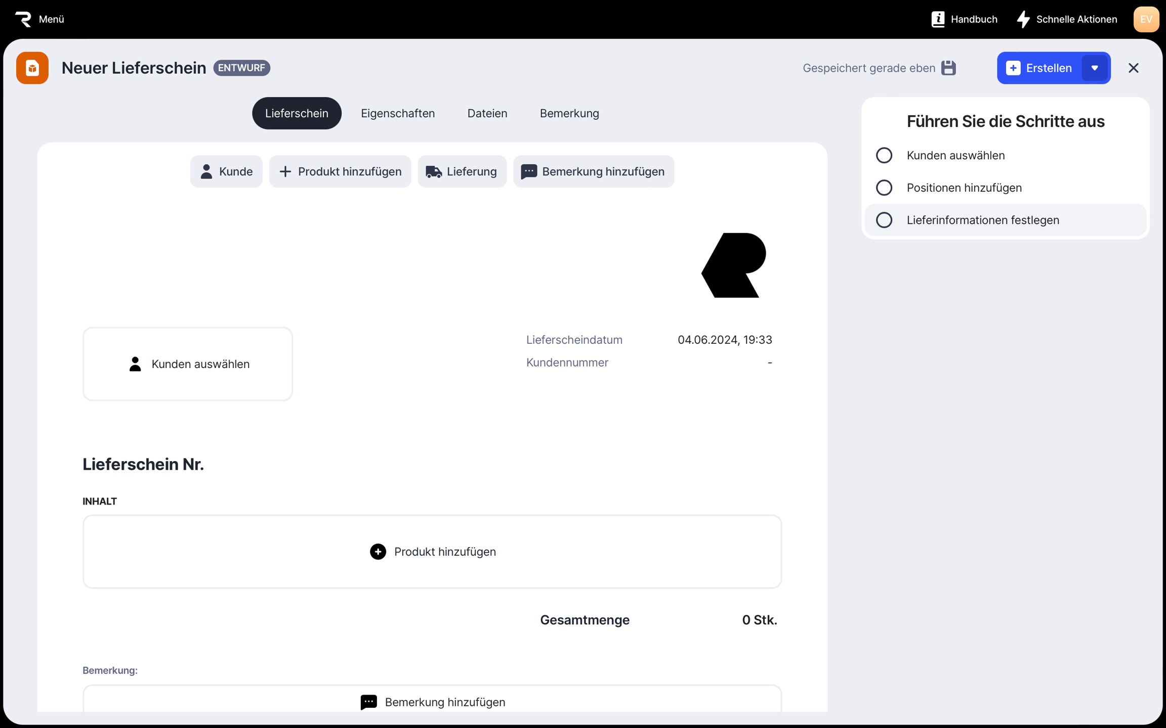 2. Klick Lieferschein erstellen