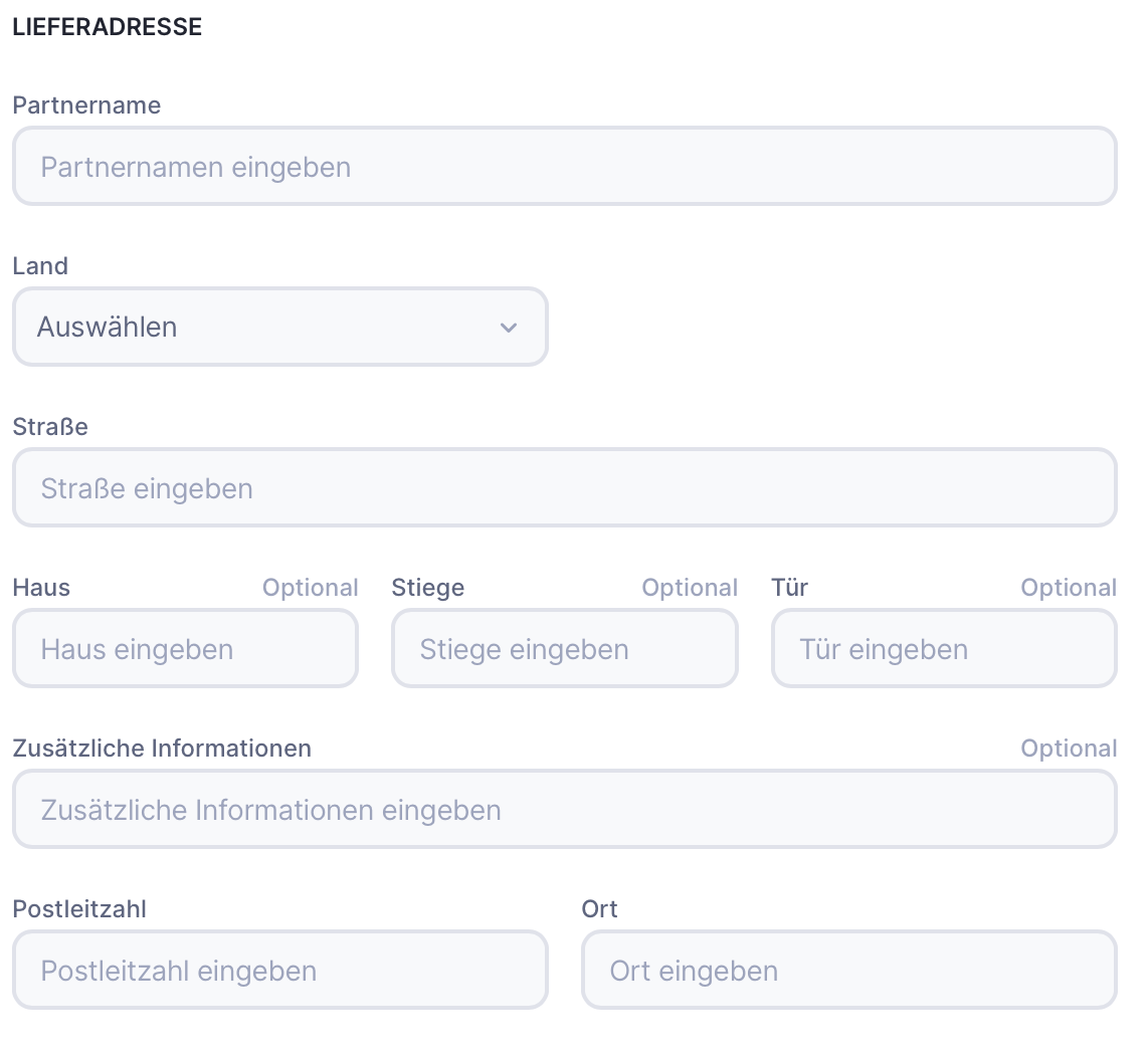 Du musst die Lieferadresse nur dann manuell eingeben, wenn du den allgemeinen Geschäftspartner ausgewählt hast oder der bestehende Kunde keine Lieferadresse im Profil hat.