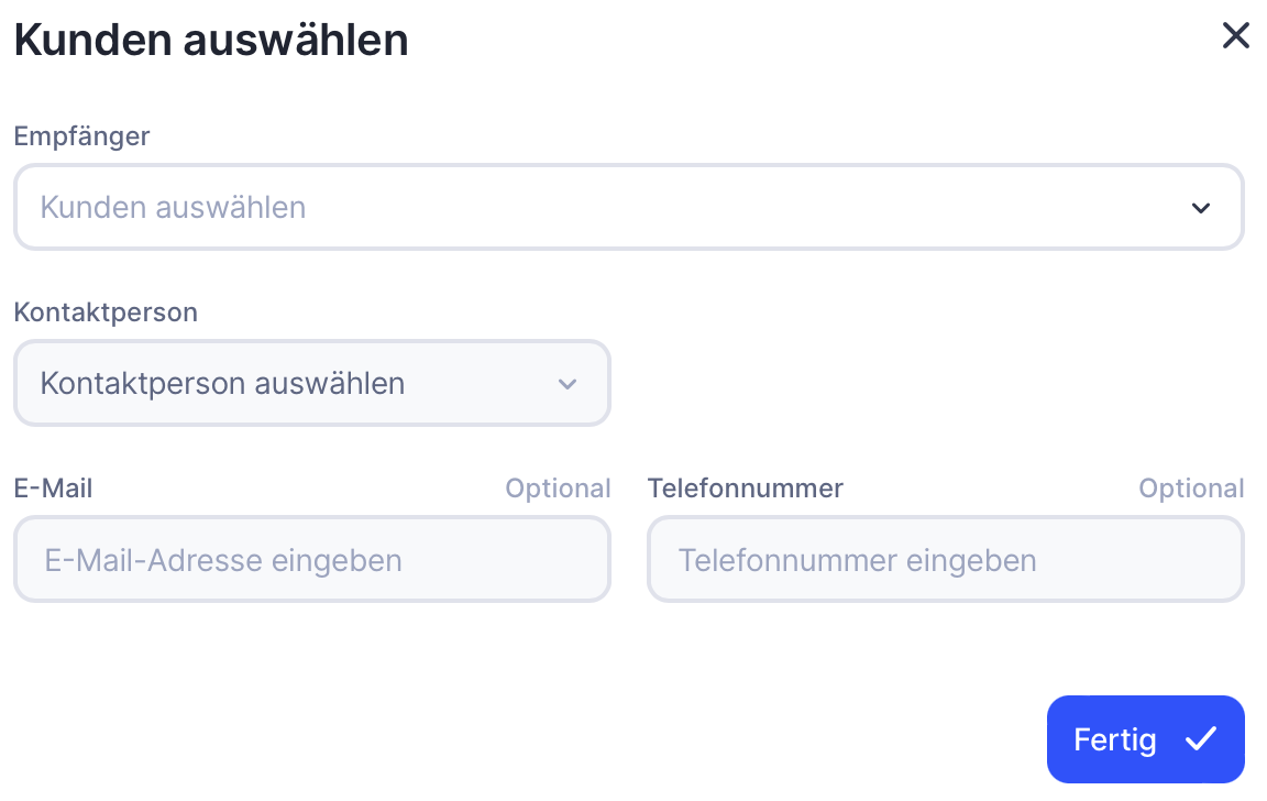 Sobald du einen Kunden ausgewählt hast, kannst du eine Kontaktperson auf der Kundenseite auswählen.