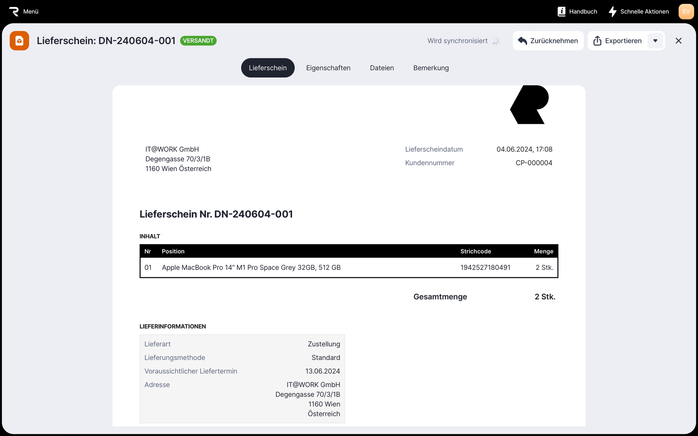 Versendete Lieferung retournieren